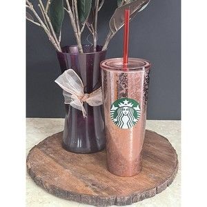 RARE Starbucks Rose Gold/ Copper Stainless Steel Metallic Glitter Cold Cup 16OZ (Like New)