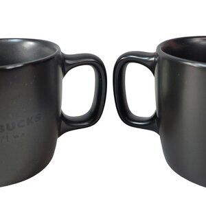 Starbucks SEA 71 WA Mug Set Black 12oz Spell Out Logo Square Handle Matte 2018