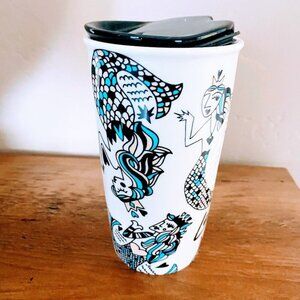 Ceramic tumbler features an embossed siren centered on its front surface.