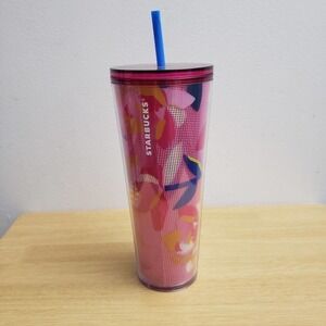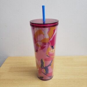Starbucks Spring 2023 Pink Floral Flower 24 Oz Tumbler Cold Cup w/ Straw - NEW!