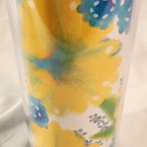 Starbucks Spring Floral Traveler Tumbler Acrylic Coffee Mug 2004 Yellow 16oz