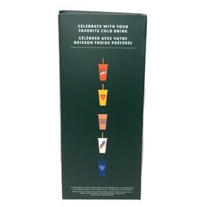 Brand new in box. Starbucks reusable cups with straws. This is a brand new, unused pack of 5 cups, 5 straws and 5 lids.