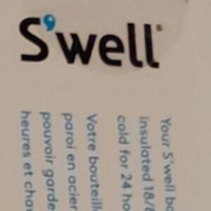 Bottle embossed with gold lettering with the words S'well and Liberty of London written out on the front of the bottle. Gold lettering is on the bottom of the bottle under the original factory price label which has never been removed.