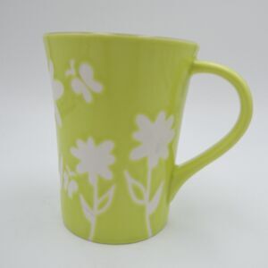 Starbucks Tall Coffee Mug 2007 Lime Green White Floral Ceramic 12oz