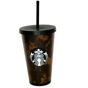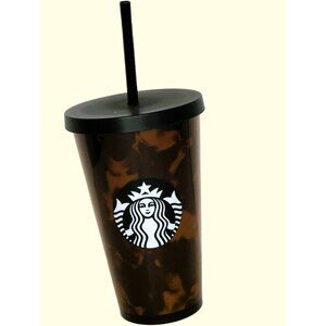 Starbucks Tortoise Shell Mocha Swirl Cold Cup Tumbler 16oz w straw