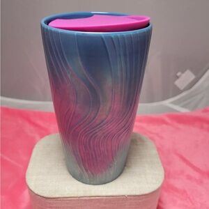 Starbucks Tumbler 2022 Blue Teal Iridescent Ceramic 12 Ounces Pink Lid