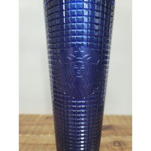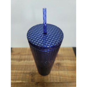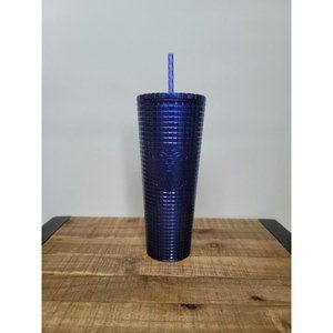 Starbucks Tumbler Grid Pearl Cobalt Blue Straw 24oz Cold Cup Plastic Shimmer NEW