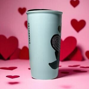 Starbucks Tumbler Love Valentine Stitch Tattoo Cup 12oz Ceramic Blue Coffee Mug