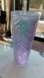 Stunning limited edition Starbucks “Unicorn Jewel” studded tumbler featuring iridescent diamond-cut design that shifts between lilac, blue, and gold tones.