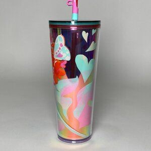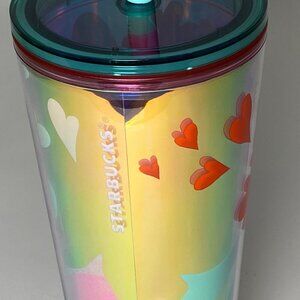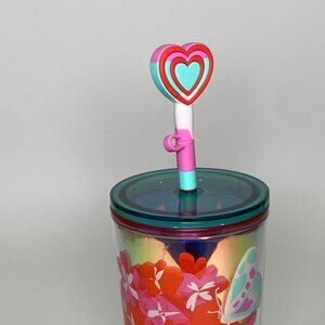 Starbucks Valentine 24oz Cold Tumbler w Silicone Straw Heart Topper Pink New