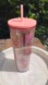 Starbucks Valentine's Day Pink Flower Hearts Rose Gold Glitter 24oz Tumbler