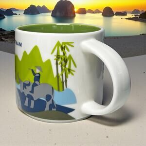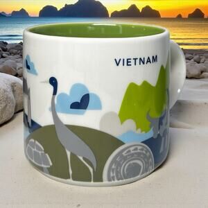 Bring home a piece of Vietnam with this authentic Starbucks You Are Here Collection ceramic mug. Featuring the vibrant Vietnam city design, this 14 oz coffee cup is perfect for daily use or for collectors who love to showcase rare Starbucks mugs from around the world.