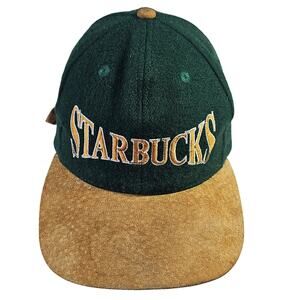 Starbucks Vintage 90s Suede n Wool Blend Rare Find Green n Beige hat. Seattle WA Made. Embroidered logo accents. Unique. Standout. Special hat. Adjustable back. In Good condition. Well Loved. Must see All pictures for the details and measurements. From non smoking home. Ships Fast. Offers Welcome.