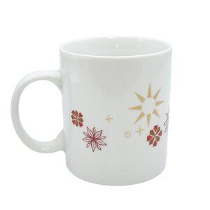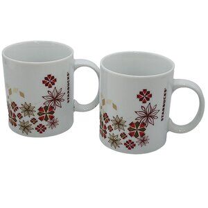 Starbucks Vintage Poinsettia Ceramic Coffee Mug Set Of 2pc 12oz Gold Red White