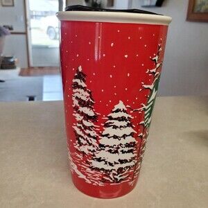 Starbucks Travel Mug Winter Holiday Christmas Tree To-Go 12oz Ceramic Tumbler