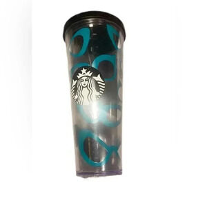 Starbucks MIRRORED SUNGLASSES Acrylic Venti 24 oz. Cold Cup Tumbler 2014 / HTF. Starbucks Mirrored Sunglasses hard to find cup. Teal/turquoise with silver mirrored reflective glasses. Black lid In good used condition but missing straw