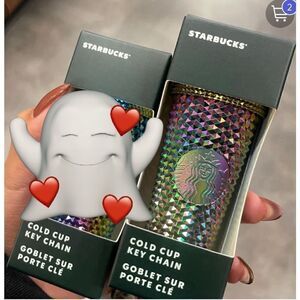 Starbucks irodescent oil slick mermaid/dragon color studded cold cup keychain- bag charm, key fob ect