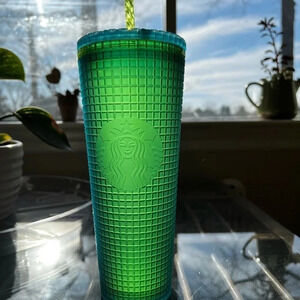 Starbucks Spring 2022 tumbler, Mountain Dew color. Beautiful colors that change with the light, grid pattern. Experience seller will ship with care.