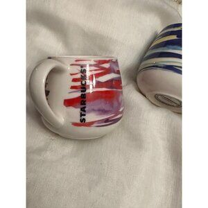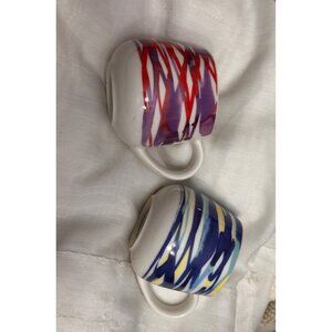 Starbucks watercolor espresso demitasse Ceramic Mugs Set Of 2 3oz Red & Blue