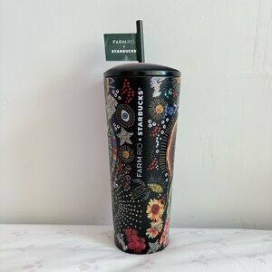 New with tags Starbucks x Farm Rio 2025 Black 24oz Tumbler with a beautiful vibrant tropical print.