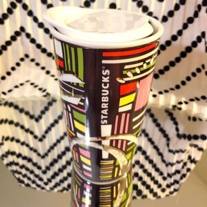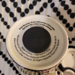 Starbucks 2014 Double Wall Porcelain Art Deco Gold Travel Mug - 12 Oz.