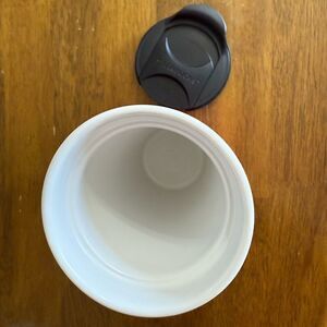 Please note there is a small nick in the lid. It is on the section used to loft the lid off, and NOT on the side you drink from. Doesn’t interfere with functionality. 🙂