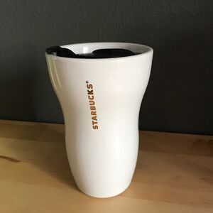 This is a super cute and festive Starbucks ceramic mug perfect for this season! In white and gold lettering. 9 oz. Only used once so in like new condition!