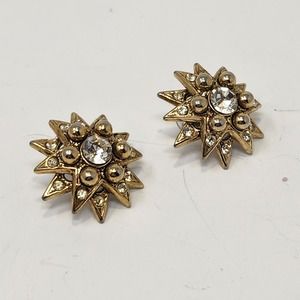 Starburst Clear Crystal Gold Tone Post Earrings Pierced Costume Jewelry Stars