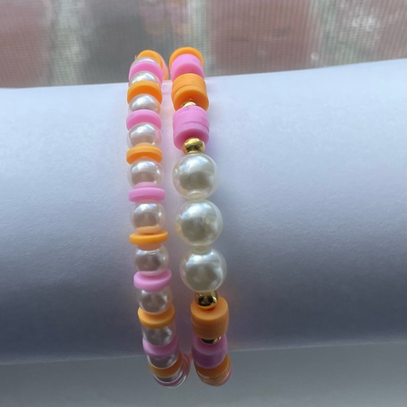 The starburst pack comes with two adorable orange and pink bracelets. They are handmade and so affordable! The price is firm!