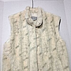 Starfire Size Med Zip up Vest, Very Classy Warm & Cozy Callar Vest. This vest is faux fur retro stylish classic with no sleeves, 27in long length and 23in chest. This vest zips up in front. 100% Modacrylic and the lining is 100% polyester. This vest is also a staple in your closet and is in excellent condition. This vest also has 2 Pockets in front.
