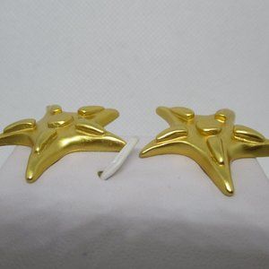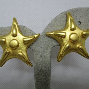Never Worn Vintage gold tone matt finish textured Starfish beach ocean theme clip-on earrings.
