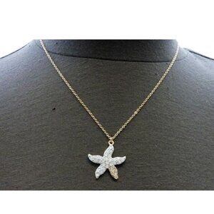 Starfish Necklace Aqua Crystal Pendant 18" Beach Sea Life Island Gold Plated