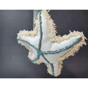 Starfish Ornament Hanging White Faux Leather Blue 6 in Ocean Theme Christmas