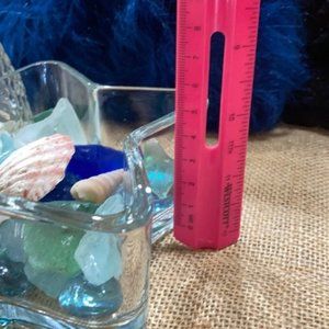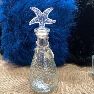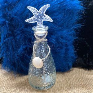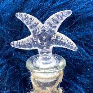 Starfish Pebble Texture Seaside Glass set decor/ 2 pieces/ great for home decor beach themed, with jute twine and accented with Florida seashells. Top sea critter top Starfish in Acrylic. Color: Clear / Bottle meas: 7.625x2.75 . Length: 2.75 in. Width: 2.75 in Height: 7.625 in/ Vase Starfish Shape with Stone/Handcrafted with loved. We Ship Quickly and Package With Care!