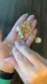 Elegant gold purse charm featuring a starfish charm with blue and gold shells and handmade crocheted shell.