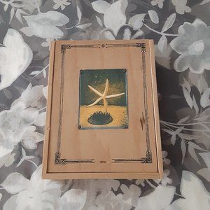"Starfish" Stationary in wooden Box - slide open reusable wooden box 8"x6" - 8 sets of cards and envelopes - New - nice little gift