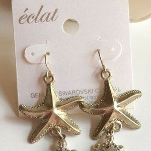 Starfish Turtle Sea Life Earrings Gold Silver Plated Pierced Dangle Island Beach