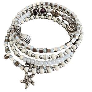 Starfish and Shell Beaded Wrap Bracelet - Seaside Charm Jewelry
