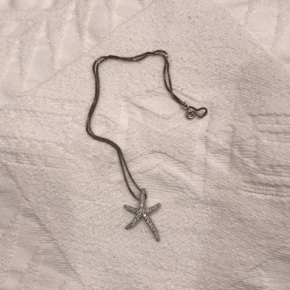 Silver starfish necklace. Slightly tarnished, easily cleaned. Approx16”
