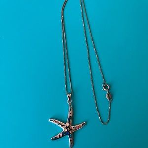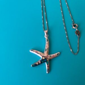 Sterling silver blue opal starfish necklace. 925 silver. The starfish glisten and sparkles in the light. Bought this in Hawaii. Never worn.