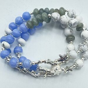 Starfish ocean beaded stretch bracelet ONE NEW blue lace agate howlite labradorite