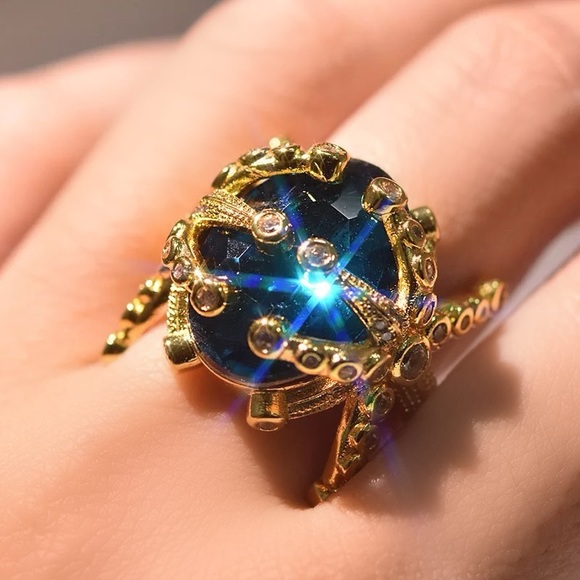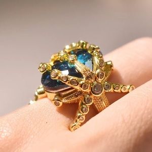 Gold Starfish ring with blue crystal 1 size 7 1 size 8 Please specify size