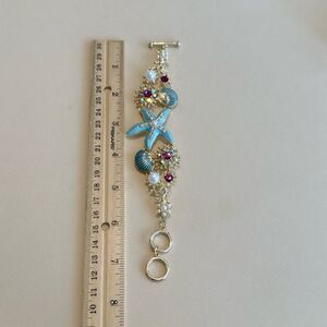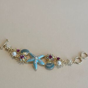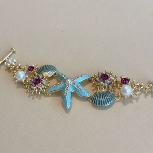 Diamond decor blue enamel starfish bracelet in gold tone hardware