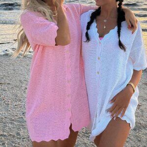 Starfit Sweater Cover Up Dress Womens Small / Medium Pink Button Down Knit Short Sleeve Cardigan