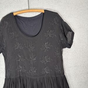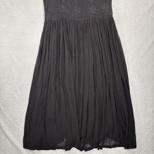 Black, Sheer, Layered, Floral, Applique, Embroidery, Knit, Gown, Maxi, Long, Dress, Cinch Waist, Romantic, Whimsical, Hippie, Boho, Bohemian, Festival, Trendy, Womens, Large, Rayon, Full Skirt, Chiffon, Mesh, Sheer.