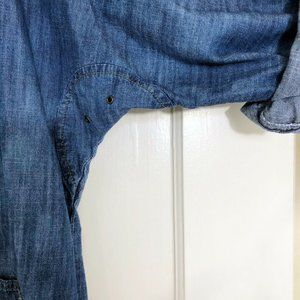 Staring At Stars Chambray Popover Shirt Rolled Sleeve Acid Washed Bleach Blue Size M