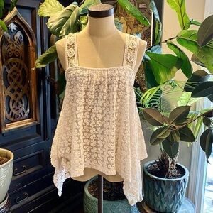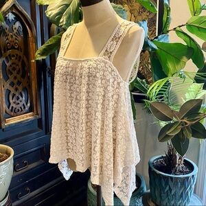Urban Outfitters Staring At Stars Embroidered Lace Tank Top. Linen white. Asymmetric