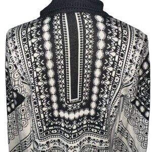 This women's open-front cardigan by Staring At Stars features a striking black-and-white tribal-inspired pattern, featuring an asymmetrical hemline and ribbed knit accents for added style and comfort.