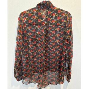 Staring at Stars Anthropologie Long Sleeve Button Front Sheer Top Women's Size S
