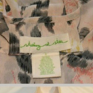 Semi sheer tank dress from Staring at Stars (Anthropologie). Delicate feminine and pretty. 35" shoulder to hem. 100% polyester. Machine wash cold, line dry. This dress has finished seams inside so that the delicate fabric doesn't fray. Made in India.